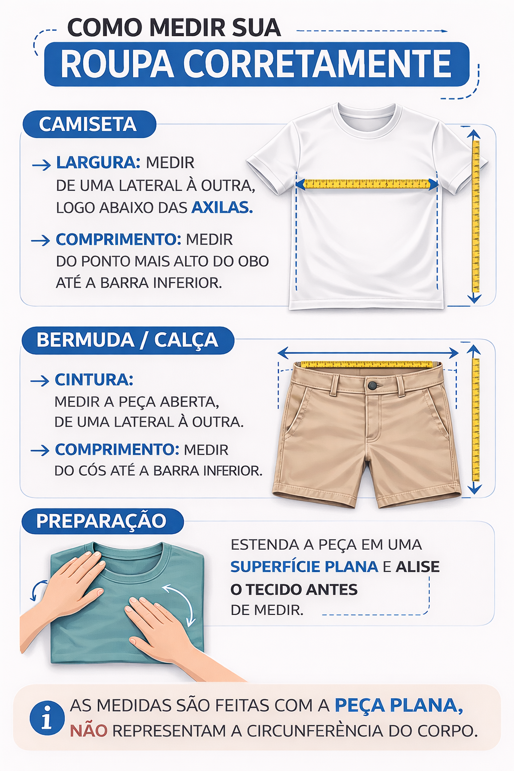 Consulte sempre a tabela de medidas disponível na descrição de cada produto. Caso precise de ajuda, entre em contato com nosso atendimento.
